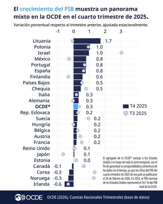 El crecimiento del PIB de la OCDE se desaceleró al 0.3%